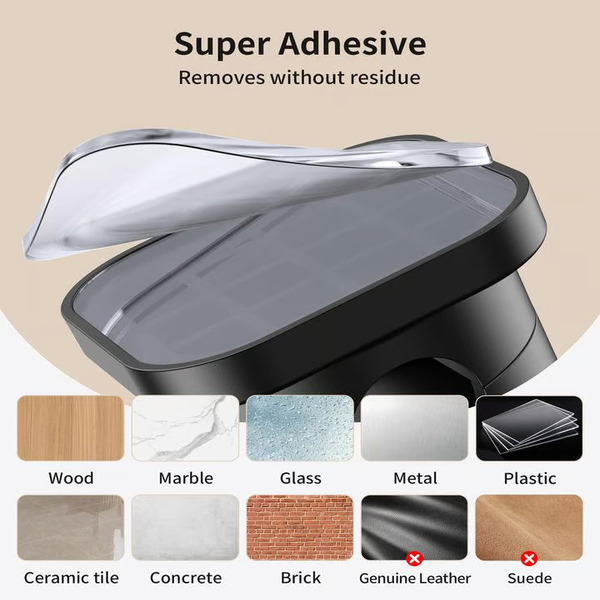 Čvrsto se pričvršćuje za ravne površine poput drveta, pločica, metala i glatkih zidova.